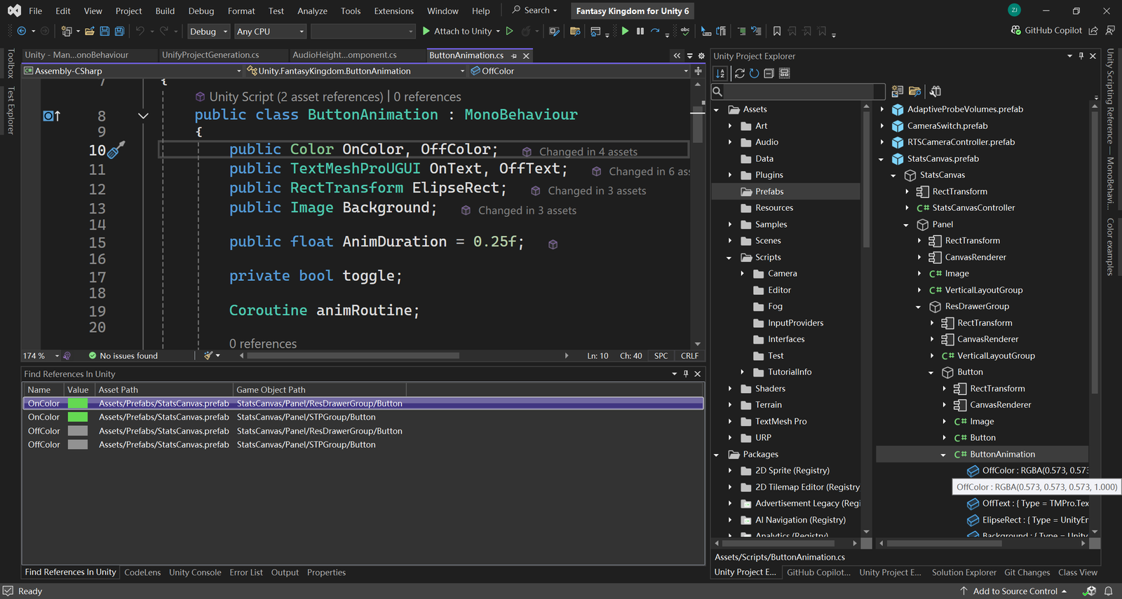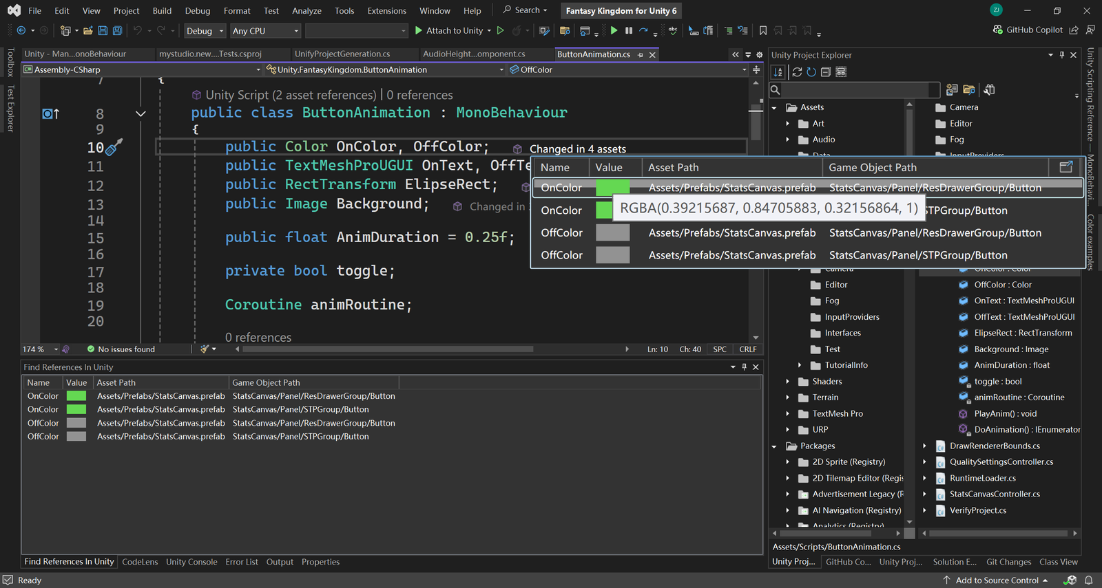 Advanced CodeLens seamlessly integrates with the Unity Project Explorer, which is provided by uSymphony. When you click on a CodeLens reference, it navigates directly to the Unity Project Explorer, displaying the relevant reference asset within Visual Studio itself. This means you can inspect and interact with the asset without leaving Visual Studio, streamlining your workflow and reducing the need for context switching between different applications.