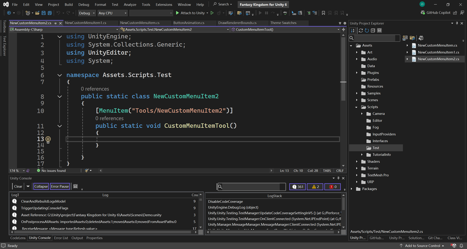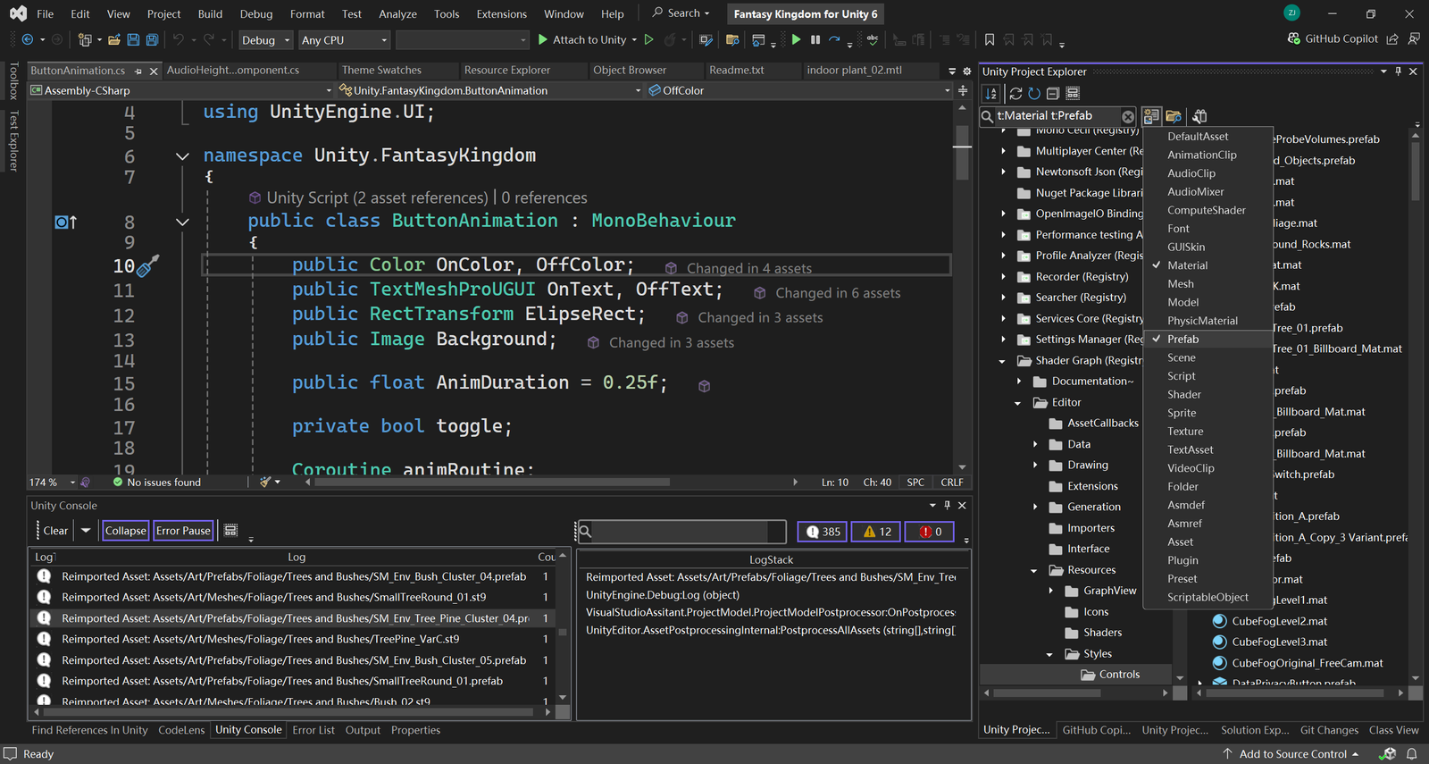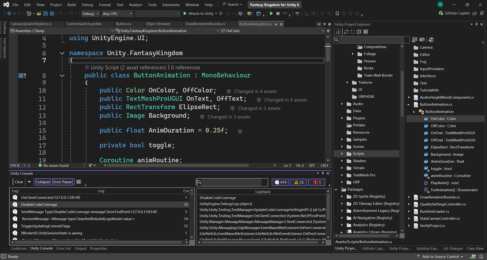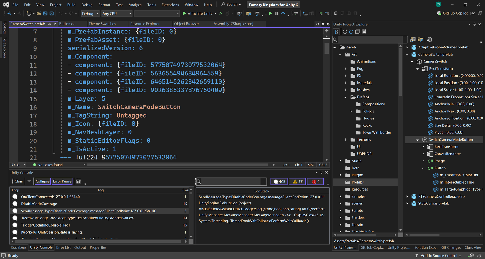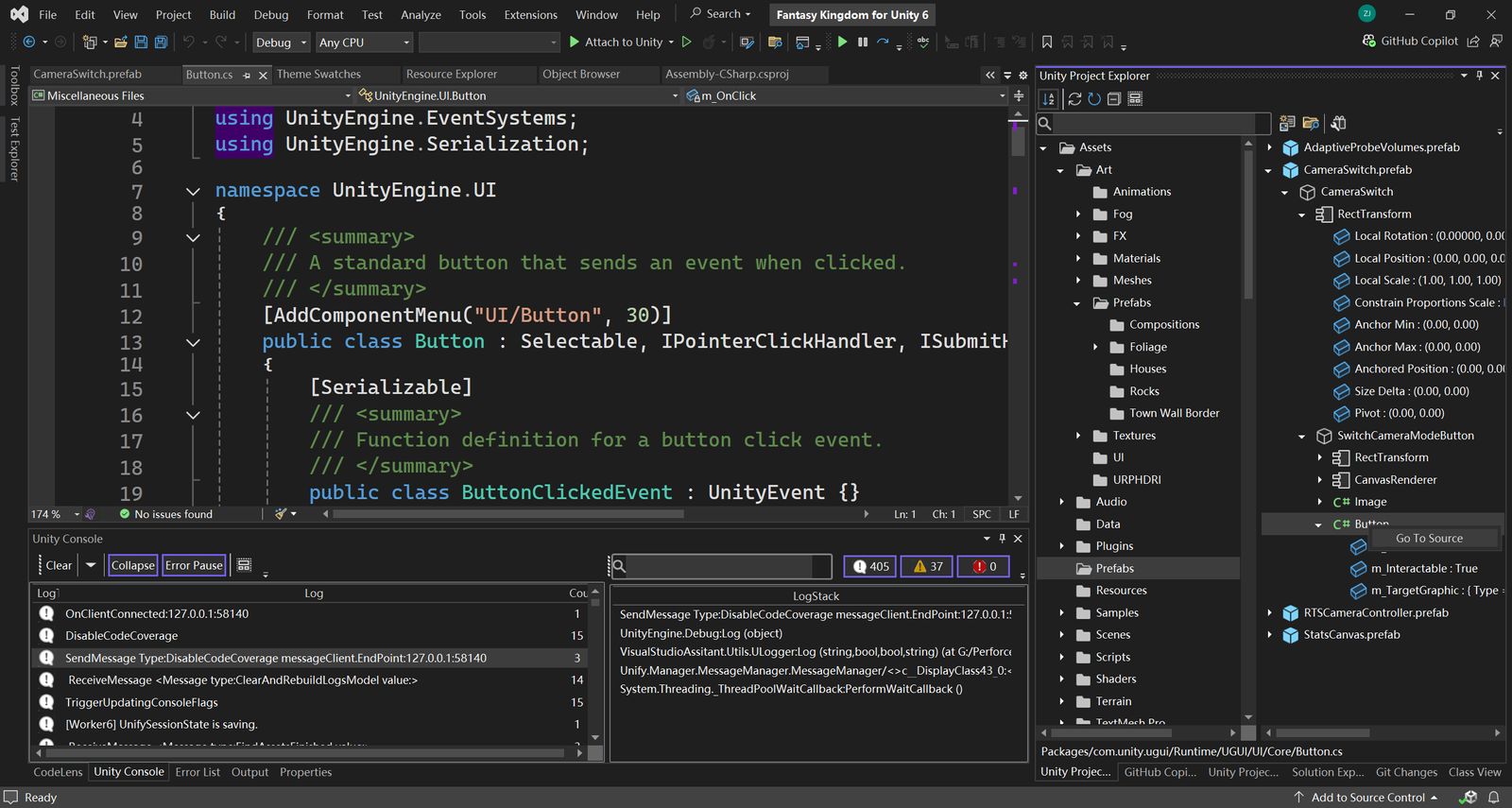 Unity Project Explorer displays all of the files related to your Project and is the main way you can navigate and manage Assets and Packages in Visual Studio, similar to the Project window in the Unity Editor.